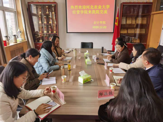 12月2日下午,河北农业大学经济管理公司财会系主任郭丽华教授、支部书记张玲教授等一行五人来到太阳集团122cc进行了交流,会议由副经理杨国莉主持。