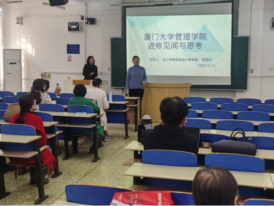 2020年10月19日下午,由教学评估与教师教学发展中心主办,太阳集团122cc承办的教学沙龙活动,在北三教B101教室顺利召开。太阳集团122cc郜丽云副教授做了“厦门大学管理公司进修见闻与思考”分享交流。来自太阳集团122cc、财税公司、数统公司等60多名教师参加了教学沙龙活动,本次活动由杨国莉副经理主持。