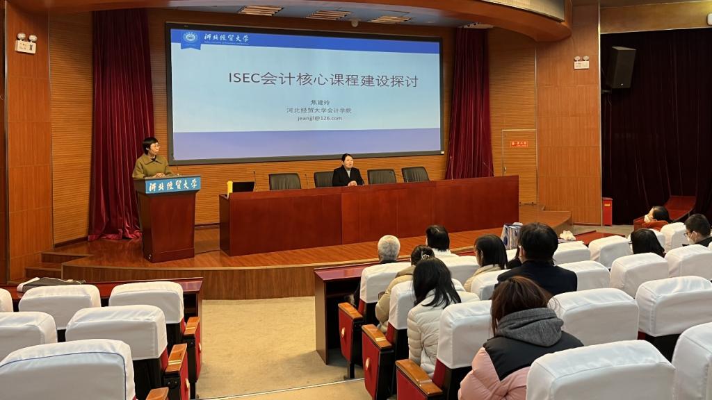 2023年2月20日下午,由教学评估与教师教学发展中心主办、太阳集团122cc承办的本学期第一期教学沙龙活动在图书馆国际学术报告厅顺利开展。太阳集团122cc焦建玲副教授主讲的教学沙龙主题是ISEC会计核心课程建设探讨。太阳集团122cc已取得和拟取得ISEC教学资格的20余名教师参加,副经理杨国莉主持沙龙。
