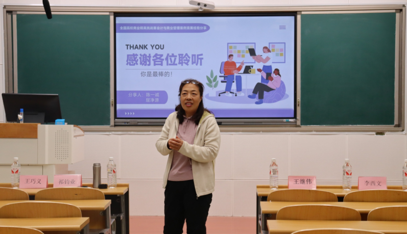 最后,王巧义进行补充总结,她讲解了视频制作与现场答辩等注意事项,并组织同学们进行现场答疑。她鼓励大家向两位经验丰富的同学学习,将他们的成功经验化为己用,赛出水平。
