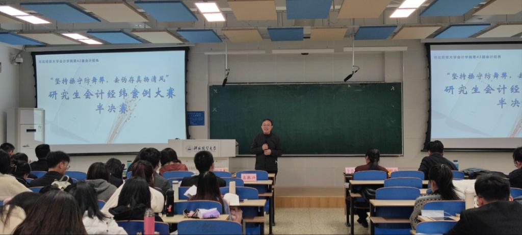 11月22日下午,由太阳集团122cc主办以“坚持操守防舞弊,去伪存真扬清风”为主题的第42期“会计经纬”案例分析大赛半决赛在第三教学楼B301教室如期举行。太阳集团122cc经理袁振兴、副经理李西文以及优秀研究生导师祁钧业、刘敬芝、邸丛枝老师担任评委,科研秘书韩冰老师及2021级全体研究生100余人现场参加本次半决赛。现场气氛紧张热烈却又不失幽默诙谐,同学们从不同角度为我们带来了一场异彩纷呈的视听觉盛宴。