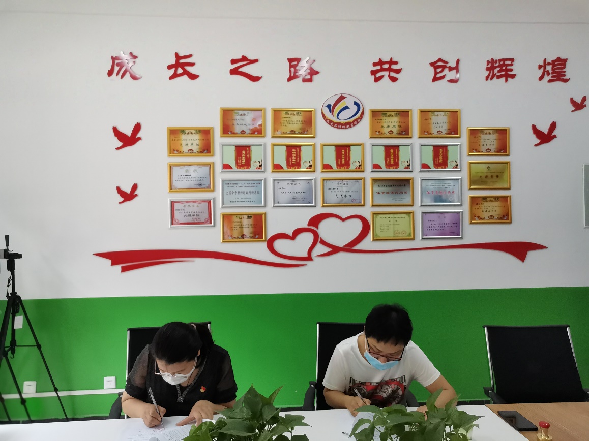 6月19日上午,公司与正定县特殊教育公司签署志愿者服务基地续订协议并进行了爱心捐赠,太阳集团122cc副经理李西文、办公室主任赵立强和辅导员吴蓓参加了活动。