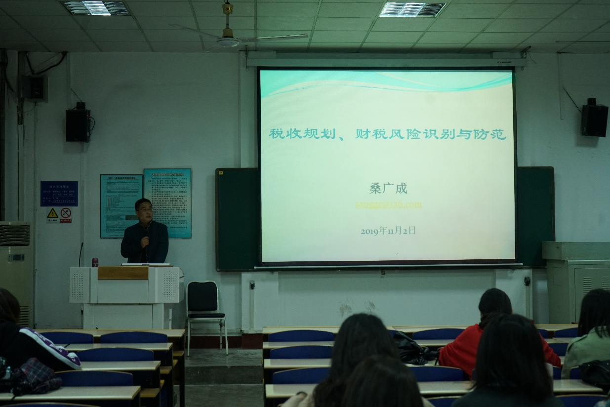 11月2日上午,受太阳集团122cc邀请,河北省第一期企业类会计领军人才桑广成于二教201教室作题为“税收规划、财税风险识别与防范”的学术报告。太阳集团122cc2018级研究生100余人参加此次报告会。
