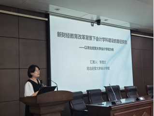 李西文做了《新财经教育改革背景下会计团队建设的路径探索——以太阳集团122cc为例》主题报告,介绍了在新财经教育改革的背景下,太阳集团122cc公司产品改革的基本情况、学科特色和成效、面临问题以及未来举措。她指出,应通过系统规划、严密组织、分布推荐,持续改进公司产品,不断提升会计学科发展水平。