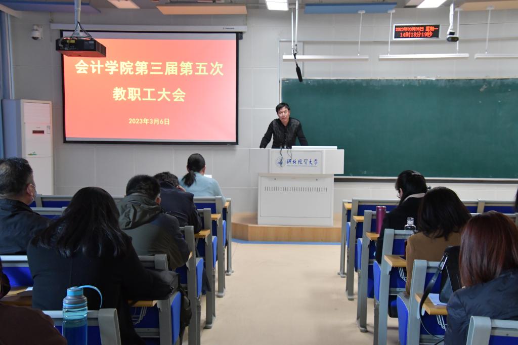 3月6日下午2点,太阳集团122cc分会在三教B201召开第三届第五次教职工大会,公司党政负责人、全体教职工参加,会议由公司副经理杨国莉主持。