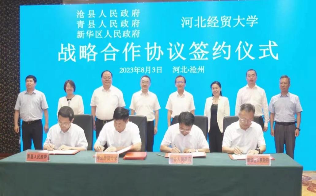 最后,签约仪式由冯彦彬主持。杨金田分别与沧县县委副书记、县长穆春江,青县县委副书记、县长时励,沧州市新华区委副书记、区长陈国帮签署战略合作协议。