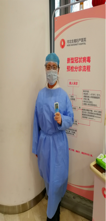 作为班级一名员工干部、共青团员,在看到无数医护人员义无反顾地奔赴抗击疫情一线后,她主动请缨,通过岗前培训,成为河北生殖妇产医院第一批预检分诊人员。从大年三十这个本该阖家团圆的日子开始正式上岗,时至今日20多天过去了,一直在抗疫一线默默地奉献和坚守。