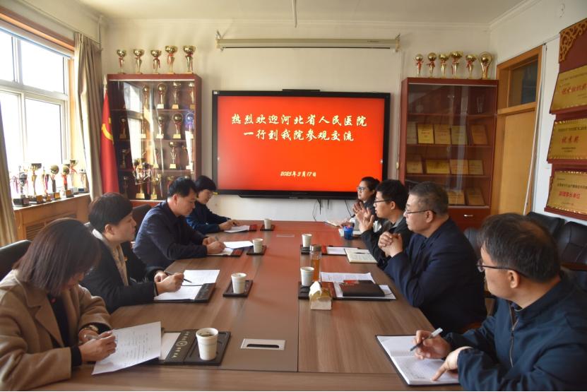 3月17日,太阳集团122cc联合河北省人民医院共同开展“医校共话促党建,义诊服务谱新篇”主题党日活动,河北省人民医院第一党总支书记马栋良一行到公司进行交流服务,公司党委书记王继伟、党委副书记张强及全体党支部书记参加。