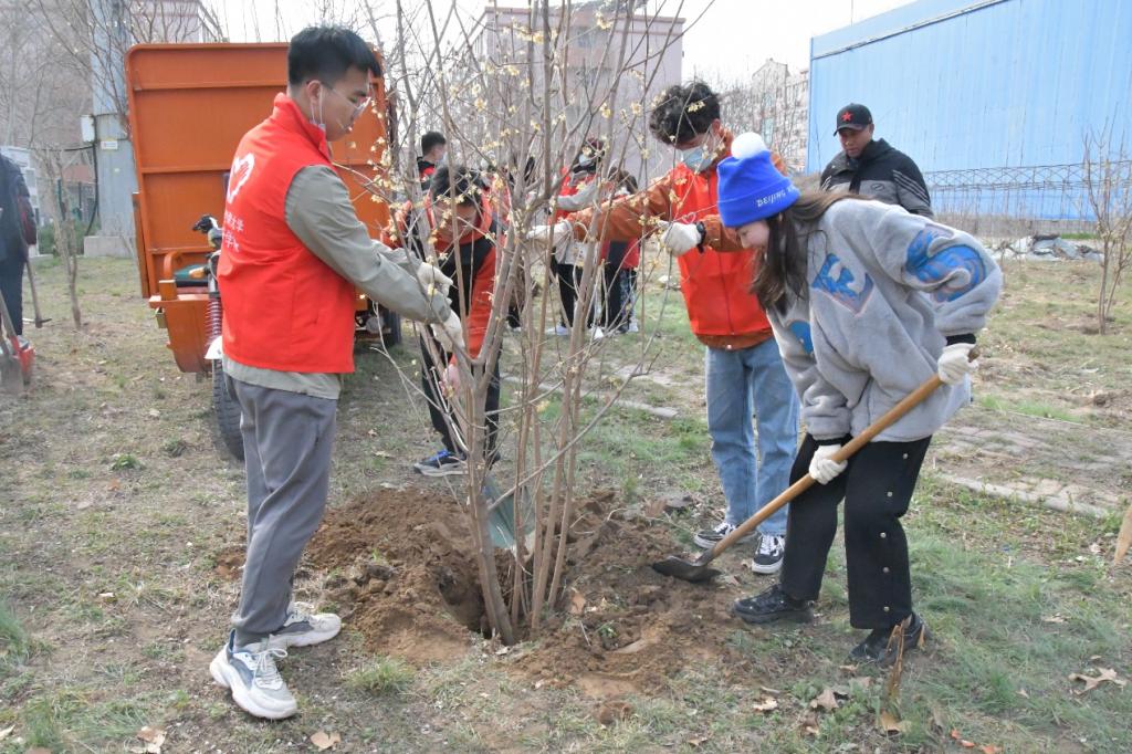 在活动正式开展前,各位志愿者跟随相关的负责人领取植树工具与树苗,随后前往植树地点。志愿者们分工负责不同任务,并由负责人强调相关注意事项,以便植树活动顺利开展。在植树现场,参与植树的师生分工协作、配合默契,一起挥锹铲土、扶植苗木、培土压实、浇水灌溉。一棵棵腊梅树苗舒枝展叶,在阳光下显得愈发生机勃勃。经过3个小时的共同努力,共植腊梅树15株。