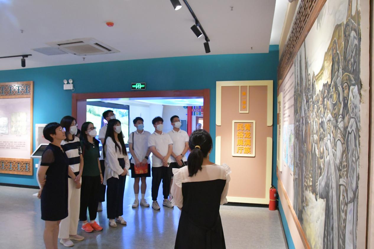 座谈结束后,副县长陈晓霞带领实践调研团一行参观了青龙满族民俗展厅。实践调研团认真倾听讲解员的介绍,领略青龙家织布、青龙剪纸等别具风格的满族文化,感悟古老技艺、淳朴民风。民俗展品以其极高的艺术、文化及历史价值,吸引了实践调研团一行的驻足观看。
