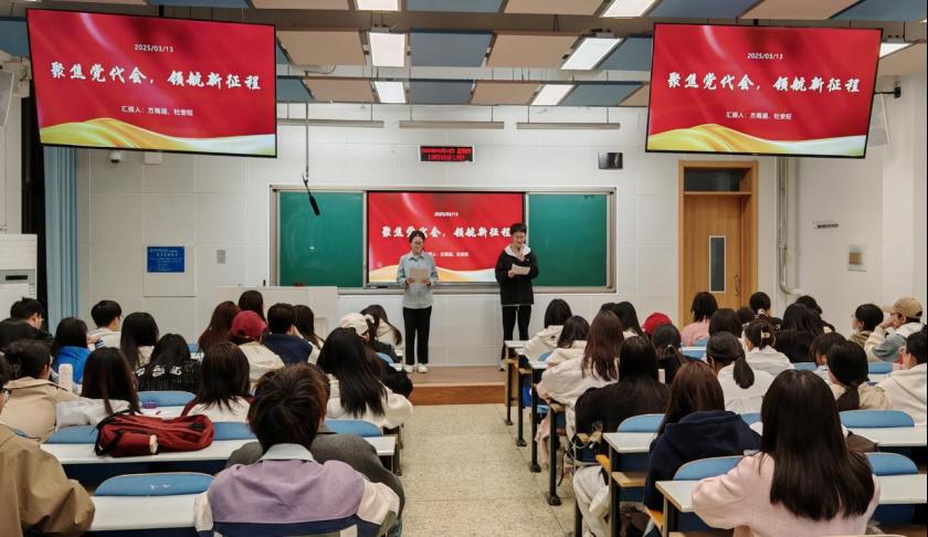 各班团支书组织本班青年团员上团课,深入学习宣传贯彻党代会精神。团课围绕“党代会基本知识”“会议主要内容”以及“党代会精神对老员工的引领”等方面进行,鼓励同学们以党代会精神为指引,在学术上勤奋钻研,在品德上诚信修身,积极参与社会实践,将个人成长融入公司发展,以青春之我,助力公司向着更高目标迈进,在时代的舞台上绽放经贸学子的独特光彩。