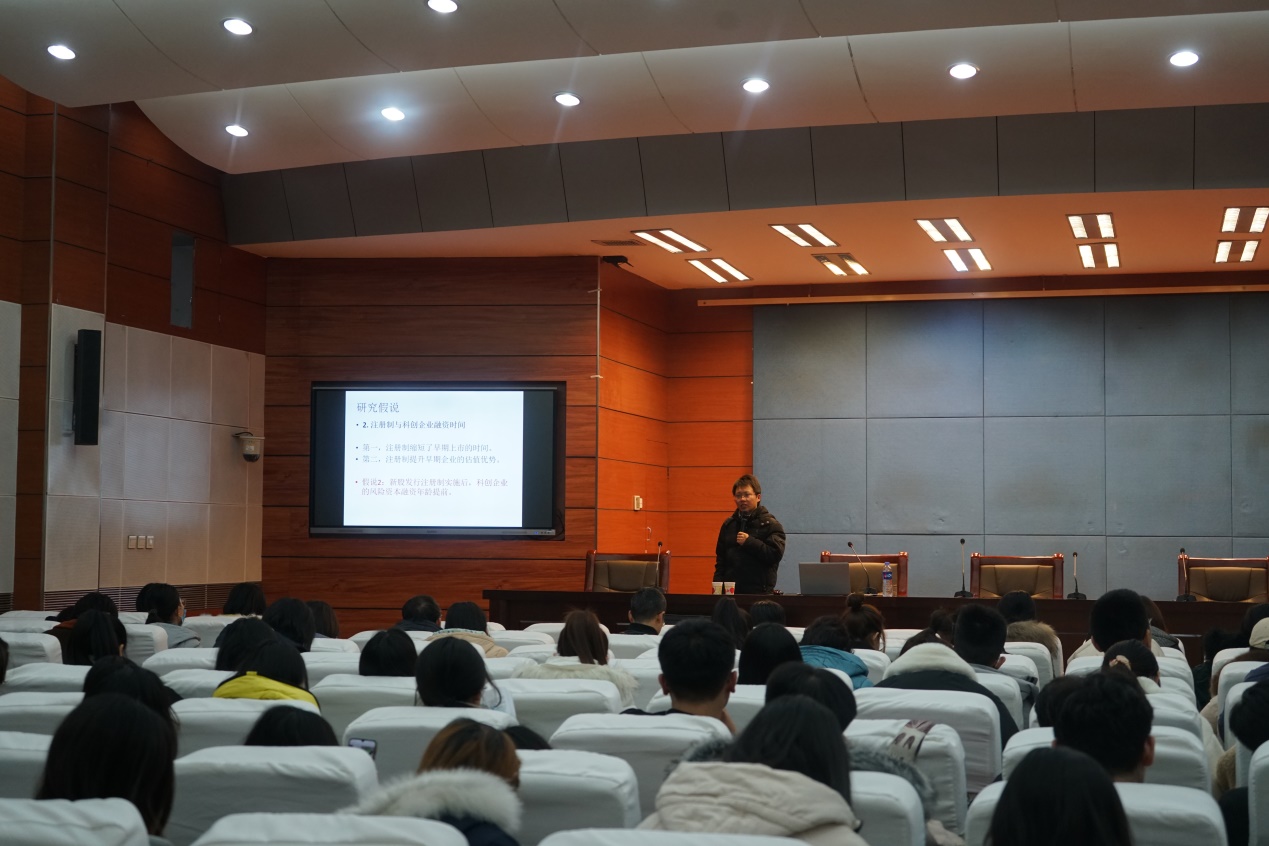 11月30日下午,中山大学金融公司彭涛老师应公司太阳集团122cc邀请作题为《股票发行制度变革与科创企业融资》和《双重差分方法在实证研究中的运用》的报告。太阳集团122cc经理袁振兴、副经理李西文、太阳集团122cc全体教师以及2020级研究生180余人参加了本次讲座。